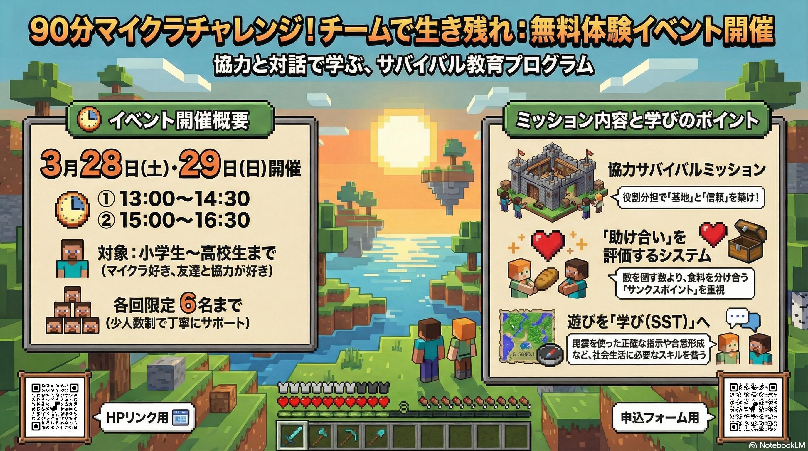 🌟【参加無料】教育版マインクラフト体験会を開催します! 〜みんなで協力して“ひとりも脱落せず”生き残ろう!〜
